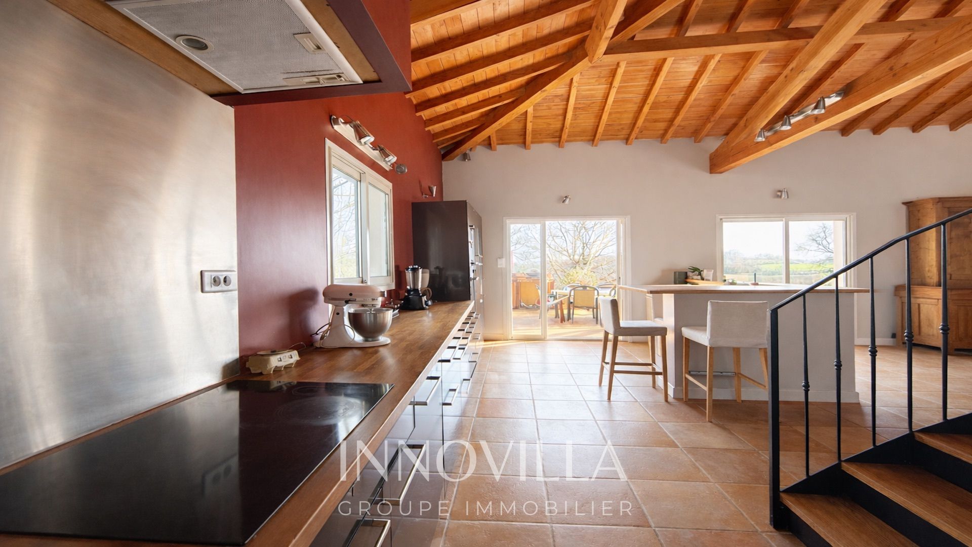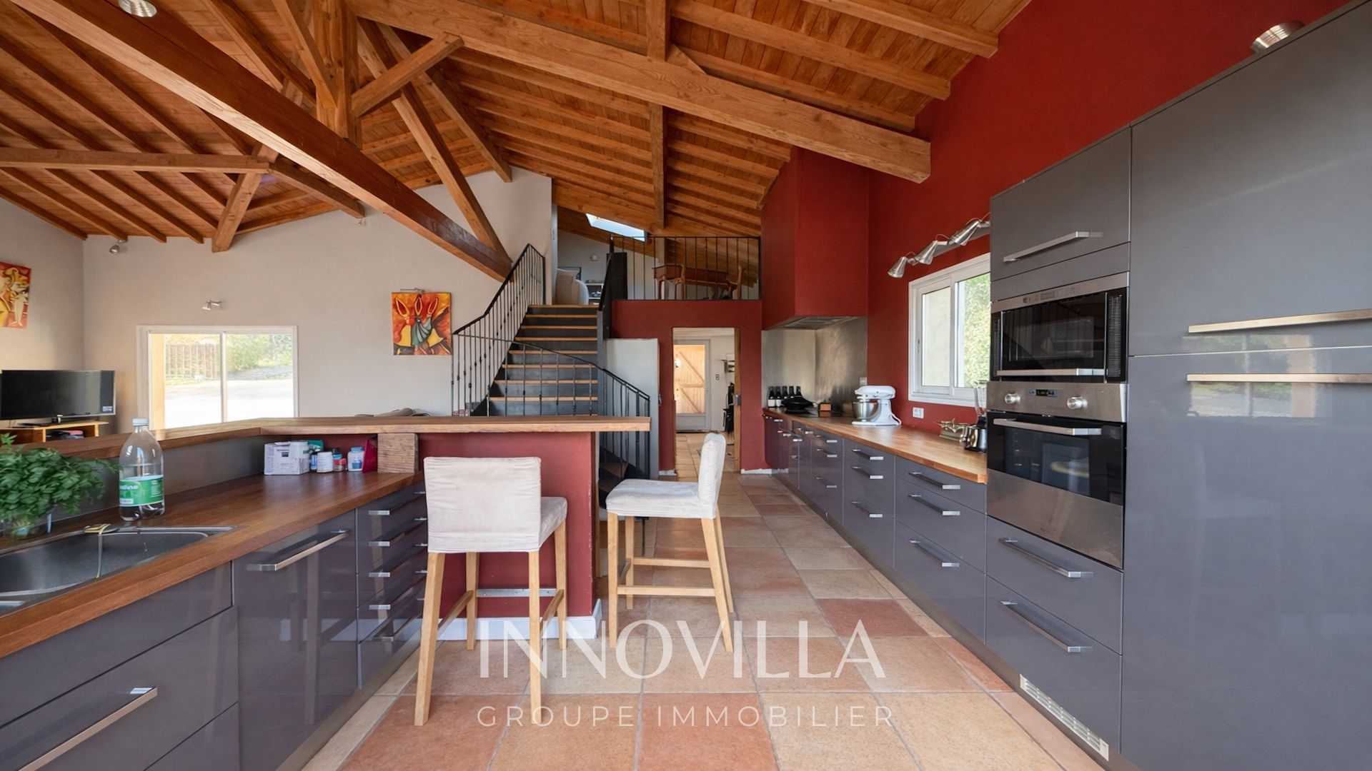 Belle cuisine de 22,79 m2 ouverte et entièrement équipée, donnant accès à une terrasse dominante.