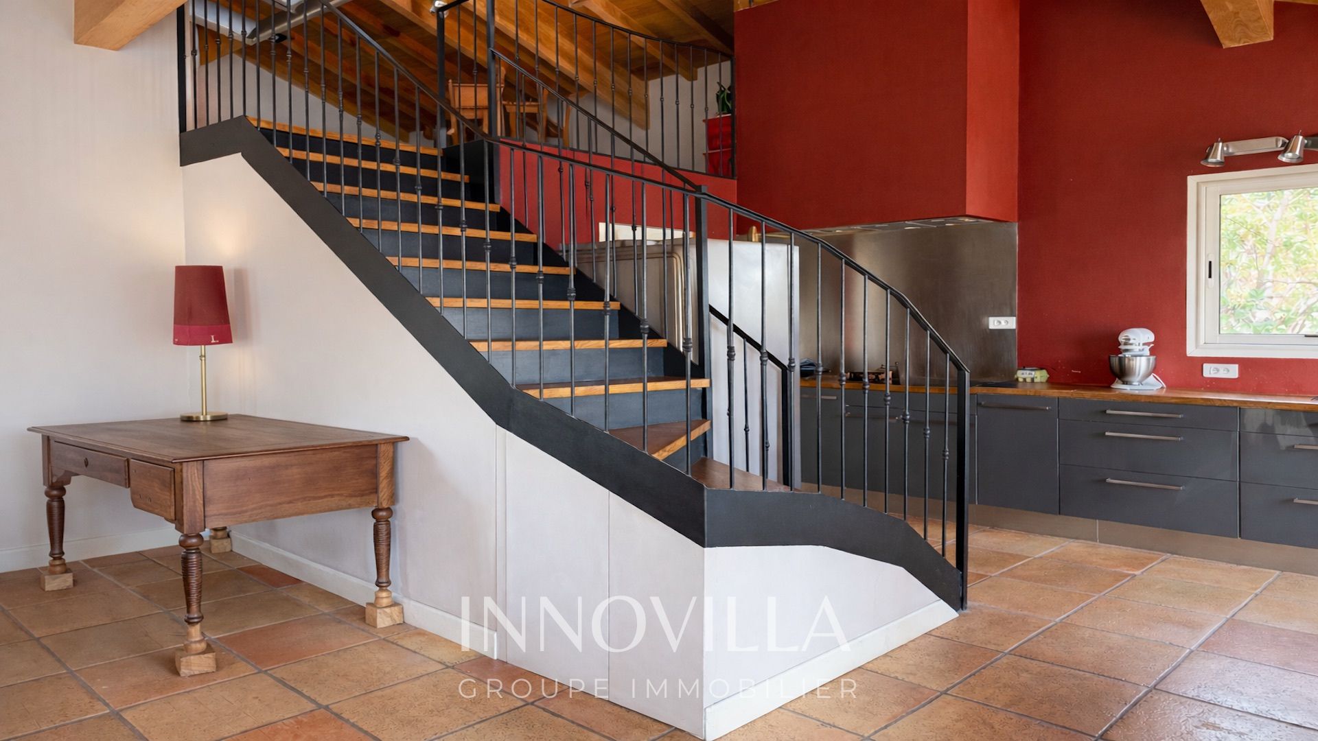 Deux mezzanines (9,72 m² et 15,99 m²) surplombent le séjour et offrent des espaces supplémentaires parfaits pour un bureau, une salle de jeux ou un coin détente.