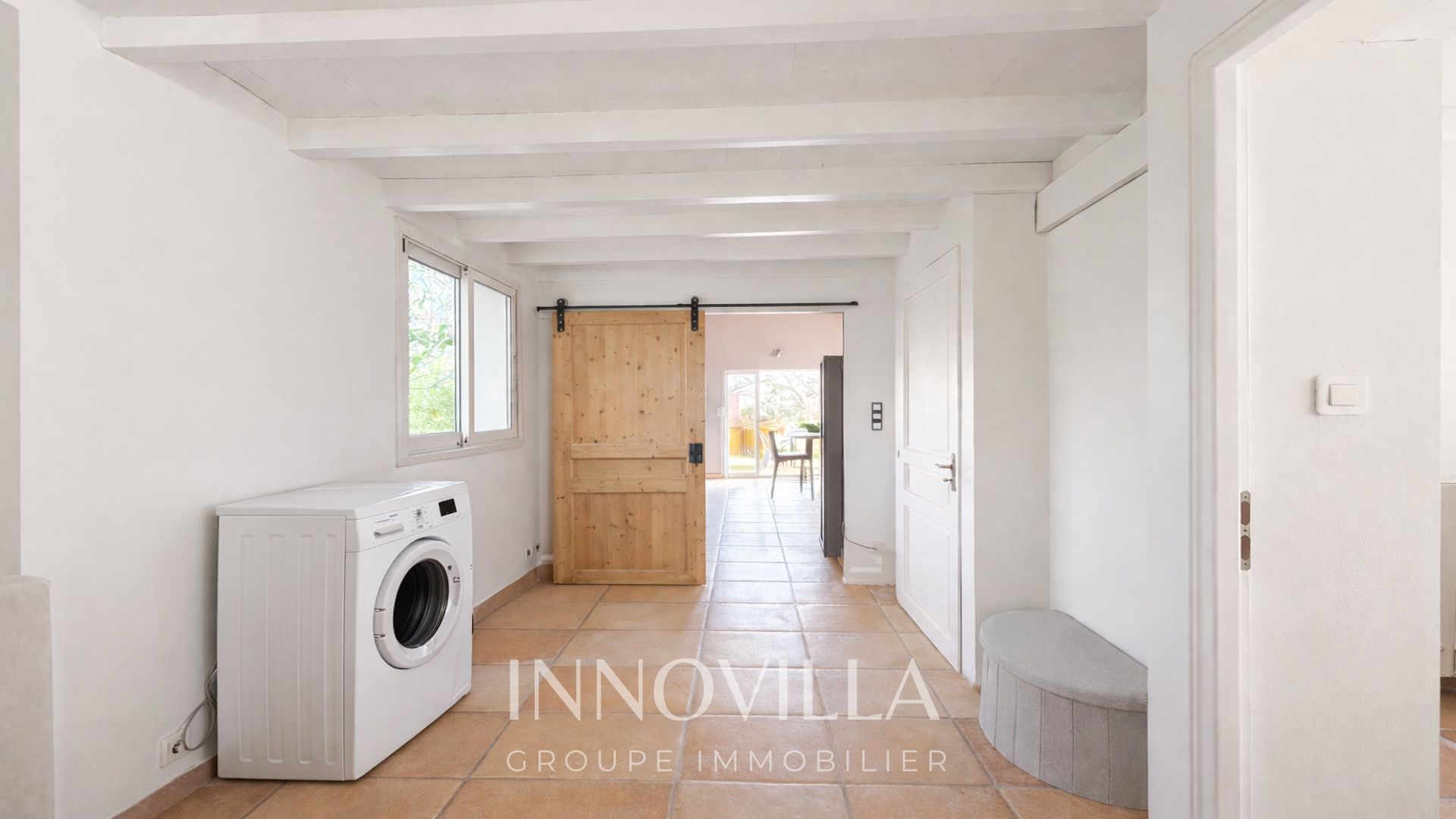 Dans la continuité de la cuisine, une seconde partie de la maison accueille une chambre indépendante, ainsi qu’une seconde buanderie, donnant accès sur un double garage ouvert, ainsi qu’un beau sous-sol et une cave à vin.