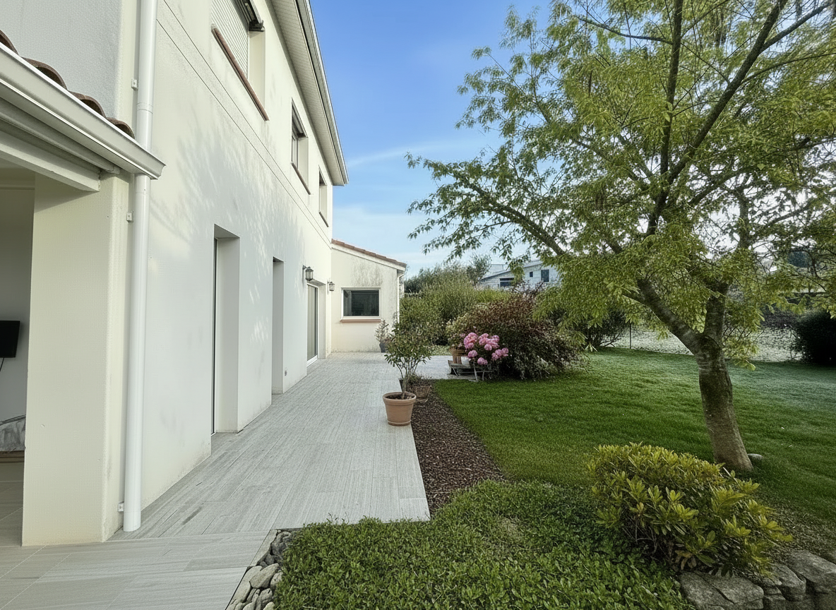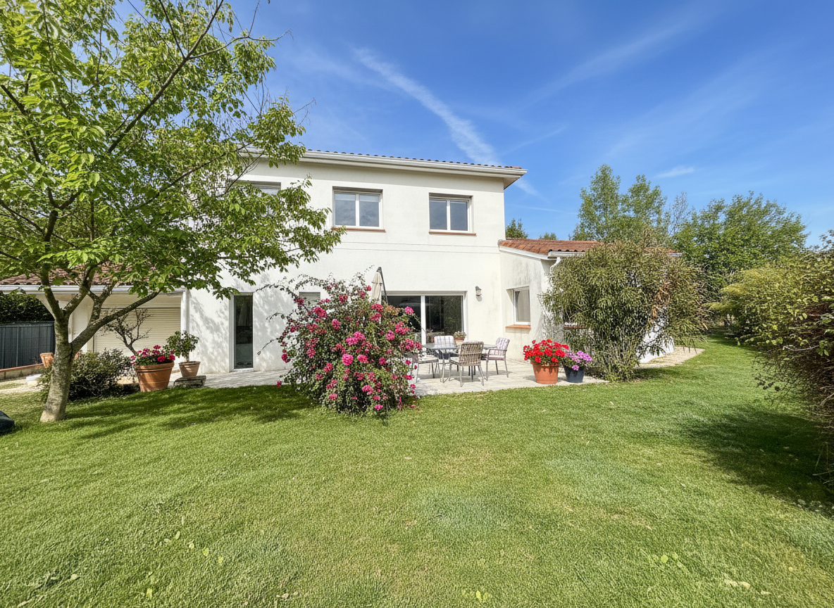 Idéalement située au centre de la commune de Montberon, cette maison T5 à étage a été construite en 2013, elle est donc conforme aux normes RT 2012. La villa offre un cadre de vie confortable et fonctionnel, à proximité immédiate des commodités.