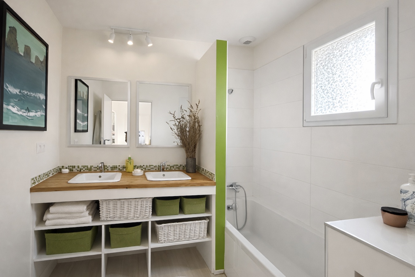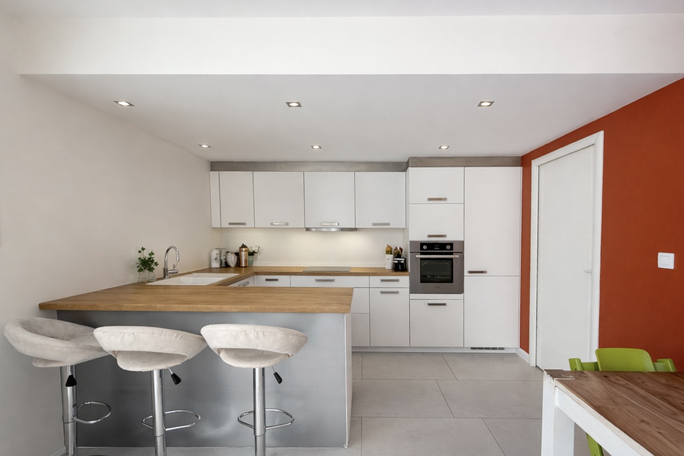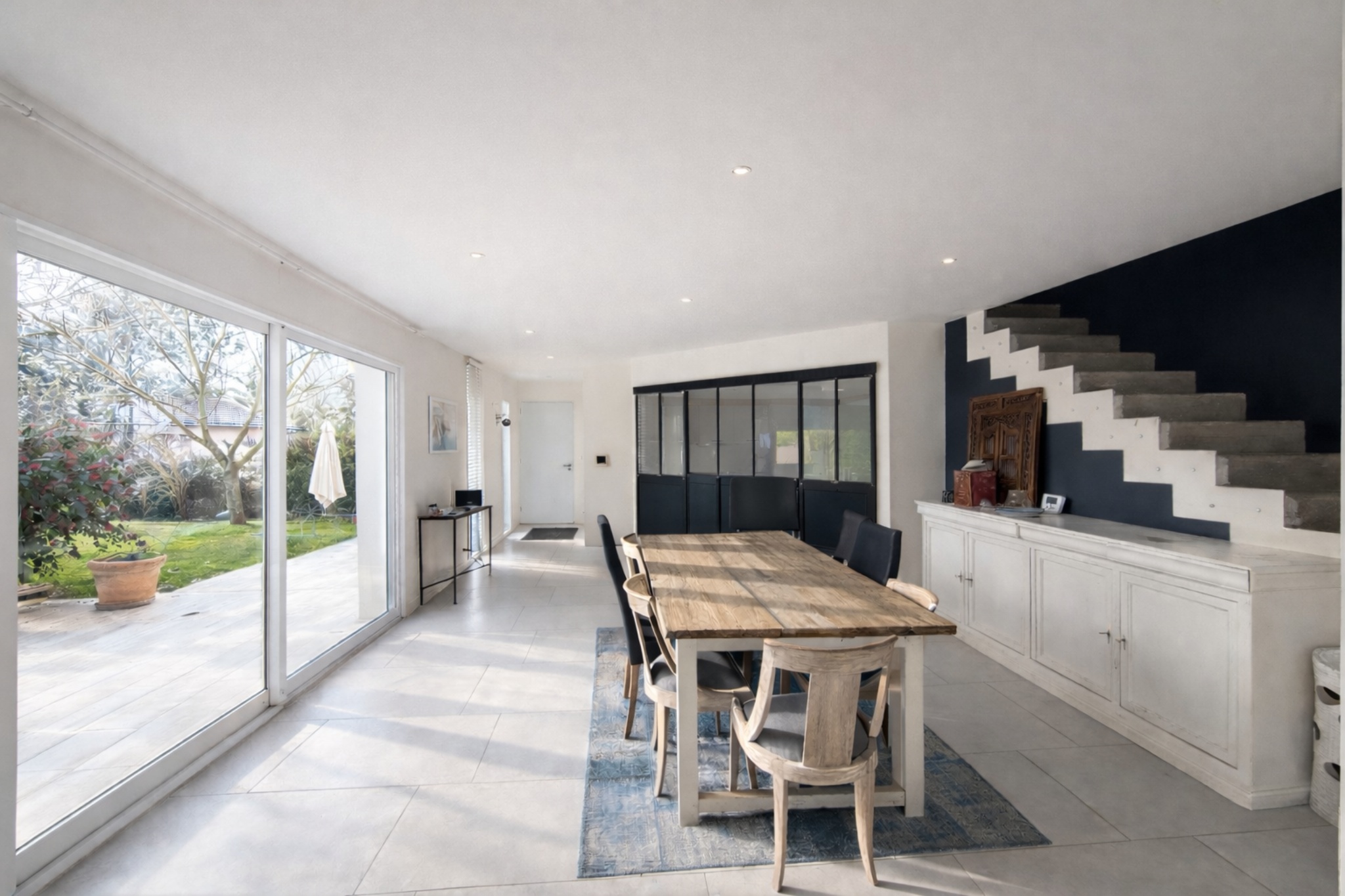 Dès l’entrée, vous serez séduits par un espace de vie lumineux et traversant de 50 m², baigné de lumière naturelle. La cuisine semi-ouverte (belle verrière coulissante), entièrement équipée, d’une surface d’environ 15 m², s’intègre parfaitement à l’ensemble.